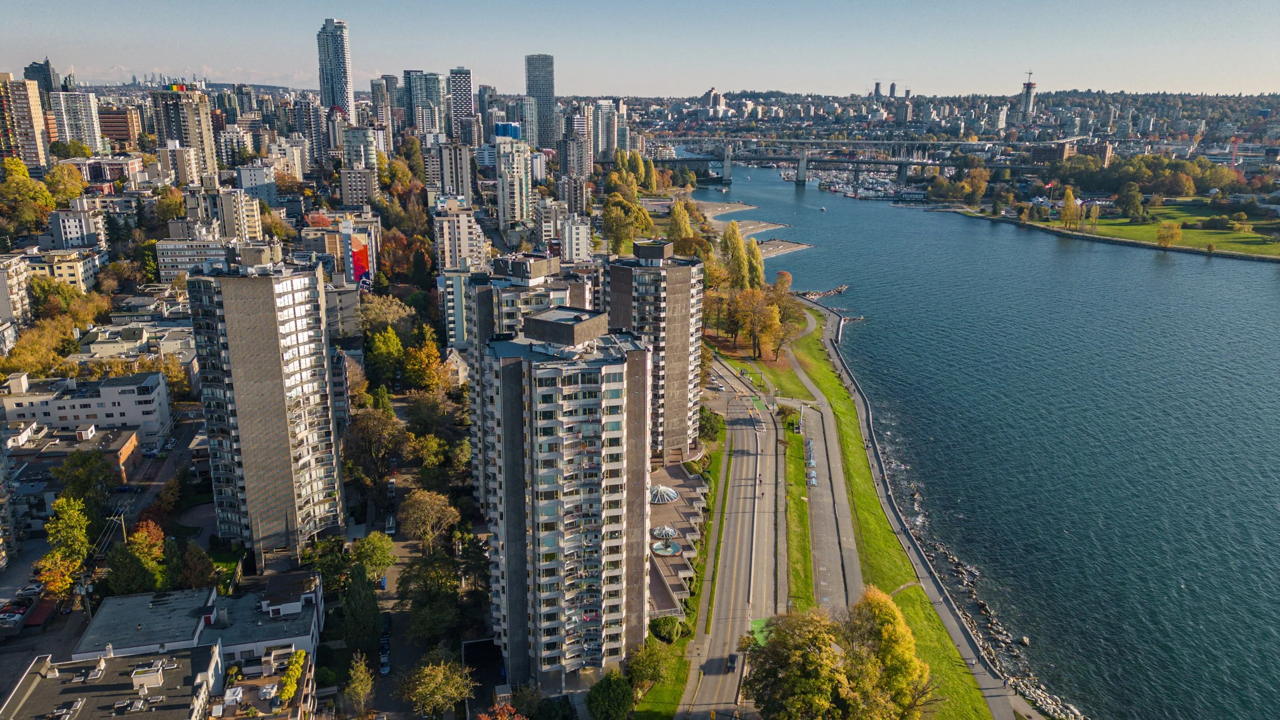 Our Pet Friendly One or Two Bedroom is the perfect unit to accommodate yourself and your furry companion. The space is comfortable and bright, with large windows, and floor to ceiling sliding doors to your private balcony. You also have the option for a city view, overlooking the bright lights of downtown Vancouver, or ocean views spanning English Bay and Stanley Park.