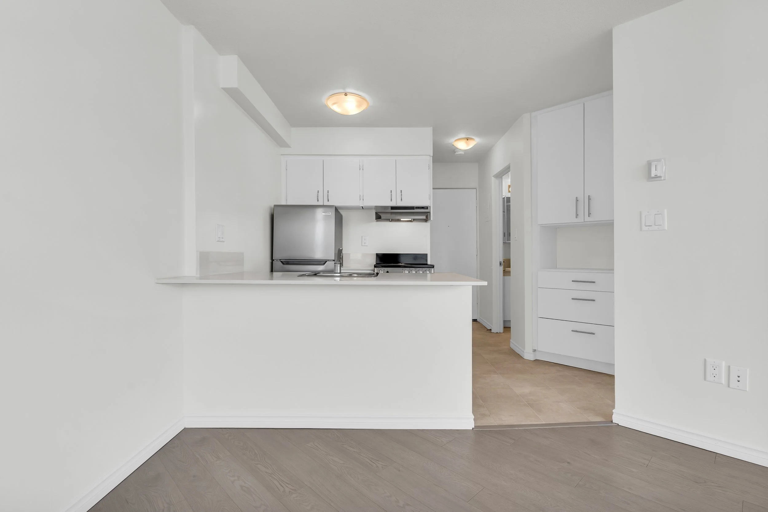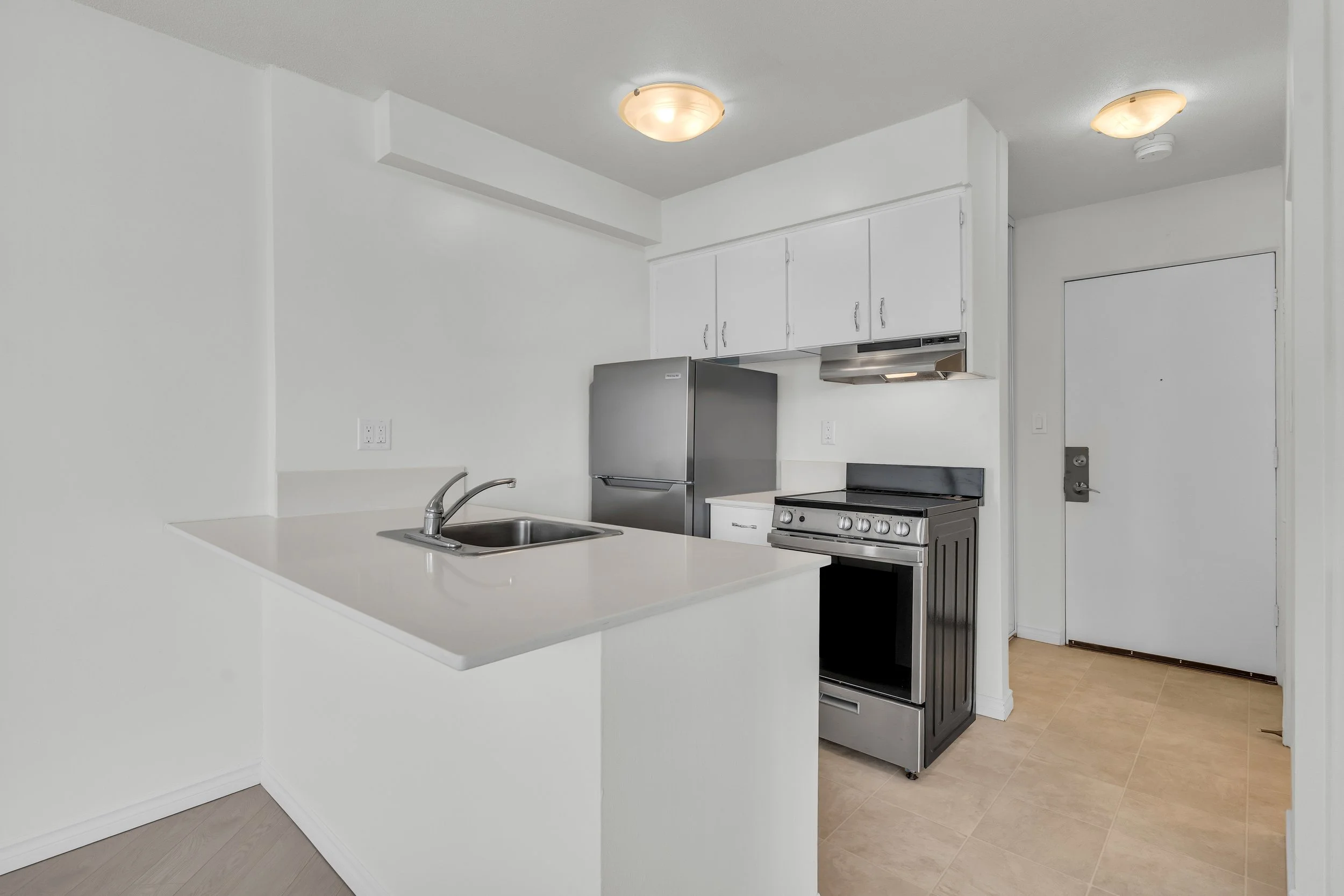 This suite boasts a functional corner kitchen with lots of storage space, a front hall linen closet, and bedroom, with ample closet space and an ensuite bathroom. You will also gain access to our complementary dog grooming facility, and lots of green space around the building for your pup to do their business.
